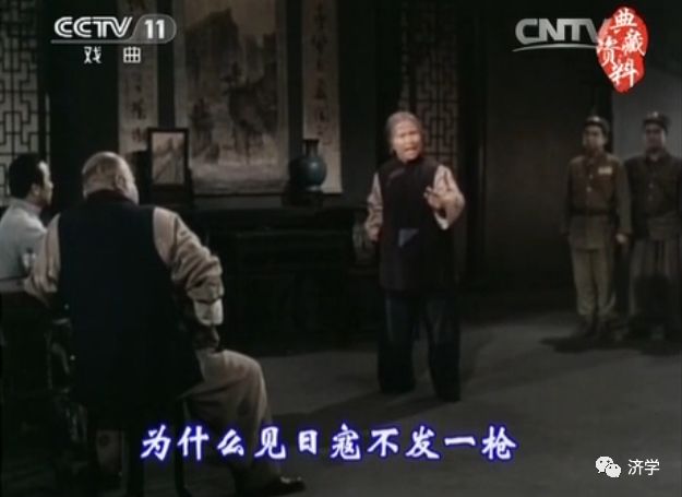 沙奶奶唱的《斥敌》正是揭穿敌人的阴谋的。当敌人把沙奶奶抓来要她提供新四军情报时,发生了下面一幕。