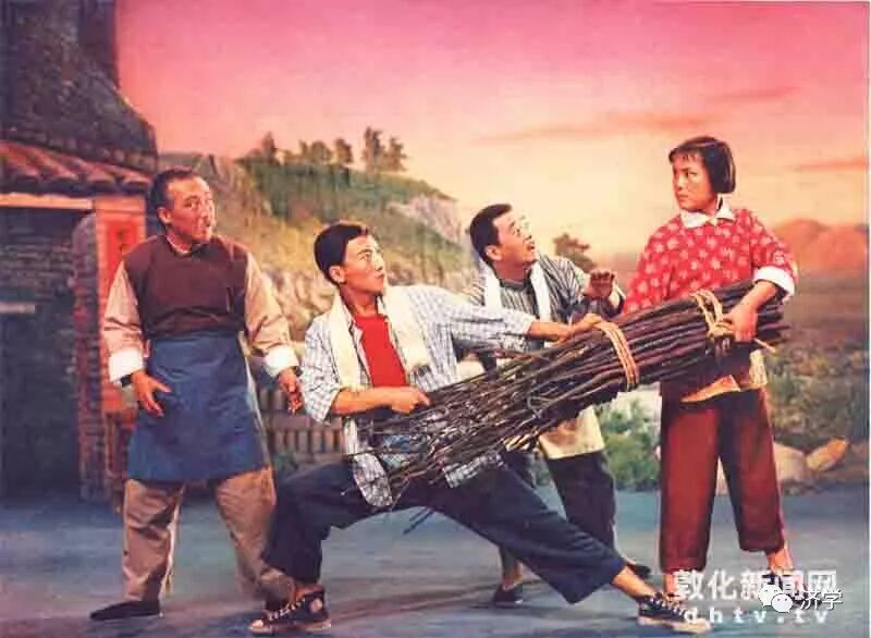 3 龙江大队党支部书记江水英带着县委关于堵江救旱的决定,乘东风,驾轻舟,赶回龙江村。(第一场《承担重任》) 4 “九龙江有水能救旱。”江水英传达县委决定,动员大家堵江救旱(第一场《承担重任》) 5 堵江要淹掉龙江大队三百亩高产田,大队长李志田(左)思想不通,要找县委解决困难。江水英意味深长地说:“咱们龙江大队可从来没把困难上交过呀!”(第二场<丢卒保车>) 6 团支部书记阿莲,朝气蓬勃地战斗在大坝工地上.(第三场<会战龙江>) 7 在急需柴草抢救大坝塌方的时候,窑上突然提前起火,阿坚伯(中)根据党支部的决定,当机立断,叫阿莲(左)快去窑上搬运柴草.(第三场<会战龙江>) 8 “为救旱就该挺身挑重担,抢险不能在拖延.”阿莲不顾种种阻挠,决意搬运柴草,抢救大坝。两个阶级、两种思想展开了激烈冲突。(第四场〈窑场斗争〉) 9 江水英果断地决定停火搬柴,并以无产阶级感情和阶级斗争观点启发阿更(中),使暗藏的阶级敌人黄过忠的破坏阴谋未能得逞。(第四场〈窑场斗争〉) 10 江水英让旱区来的小红喝水。小红杯到嘴边却停住了,原来她奶奶盼水妈说:“一碗水也能救活几棵秧苗。”在场群众深受感动。(第四场〈窑场斗争〉) 11 大坝合龙前,江水英披着星光,巡看工地,激情满怀,准备奋战一场。(第五场〈抢险合龙〉) 12 龙江大队贫下中农和当地驻军发扬“一不怕苦,二不怕死”的革命精神,决心抢险合龙。(第五场〈抢险合龙〉) 13 “中国人死都不怕,还怕困难么?”江水英带领群众跳进水中,用身体挡住激流,顶住风浪,保证大坝合龙。(第五场〈抢险合龙〉) 14 老贫农阿坚伯看到江水英在大田带病苦干,特地送来鸡汤。(第六场〈出外支援〉) 15 “又是一夜没睡”。江水英抱病从九湾河里测量水位归来,掌握了送水救旱的主动权。她迎着曙光,充满了必胜的信心。(第六场〈出外支援〉) 16 “读宝书耳边如闻党召唤,似战鼓催征人快马加鞭。”江水英带领社员学习毛主席的光辉著作〈纪念白求恩〉,启发大家,派人去后山支援。(第六场〈出外支援〉) 20 经过尖锐 斗争,暗藏的敌人被揭露了,李志田的思想转变了。龙江人继续发扬共产主义风格,开足闸门,提高水位,甘愿让江水从自己的三千亩土地上飞速流向旱区。(第八场〈闸门风云〉) 当时的情景,关闸就能够保住龙江大队的一部分秧田,放水则相反,江水流向后山。显然,放水就是公,否则就是私——尽管这个私不是个人,但小集体相对于全局来说,依旧属于私。 公与私的辩证关系,在这里简直就是绝妙的展示,这种富有教育意义的题材,难道想不通? 难道说不通? 在社会主义社会难道行不通? 再说,龙江大队也遭遇过灾害,别人同样无私地伸出援助之手,大家都在公里面共享,这有什么不好呢? 这样的道器变通,可以说是最保险的安全法则。 21 在毛泽东思想光辉照耀下,在党的坚强领导下,龙江大队和旱区社队互相支援,创造了大旱年大丰收的奇迹。谱出了一曲共产主义风格的凯歌。(尾声〈丰收凯歌〉) 《龙江颂》全剧视频: |