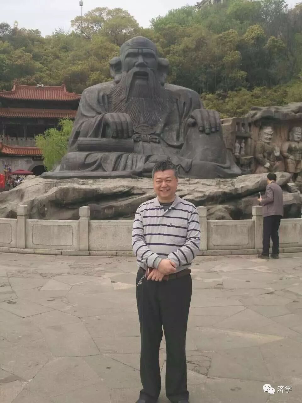 2017年4月在无锡太湖仙岛老子塑像前留影 |