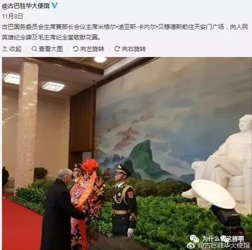 李克勤(jixuie)题记:2018年11月古巴驻华大使馆发了一条消息,古巴新任领导人迪亚斯-卡内尔瞻仰毛主席遗容。他是第三位参观毛主席纪念堂的古巴革命领袖。之前卡斯特罗兄弟都这么做过。