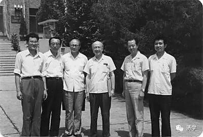 钱学森(右三)与系统学讨论班学员们在一起。中国航天系统科学与工程研究院供图