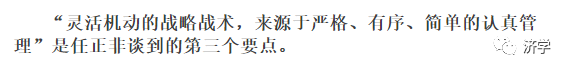 任正非说,只允许员工在主航道上发挥主观能动性与创造性。非主航道的业务,还是要认真向成功的公司学习,坚持稳定可靠运行,保持合理有效、尽可能简单的管理体系,“要防止盲目创新,四面八方都喊响创新,就是我们的葬歌。”