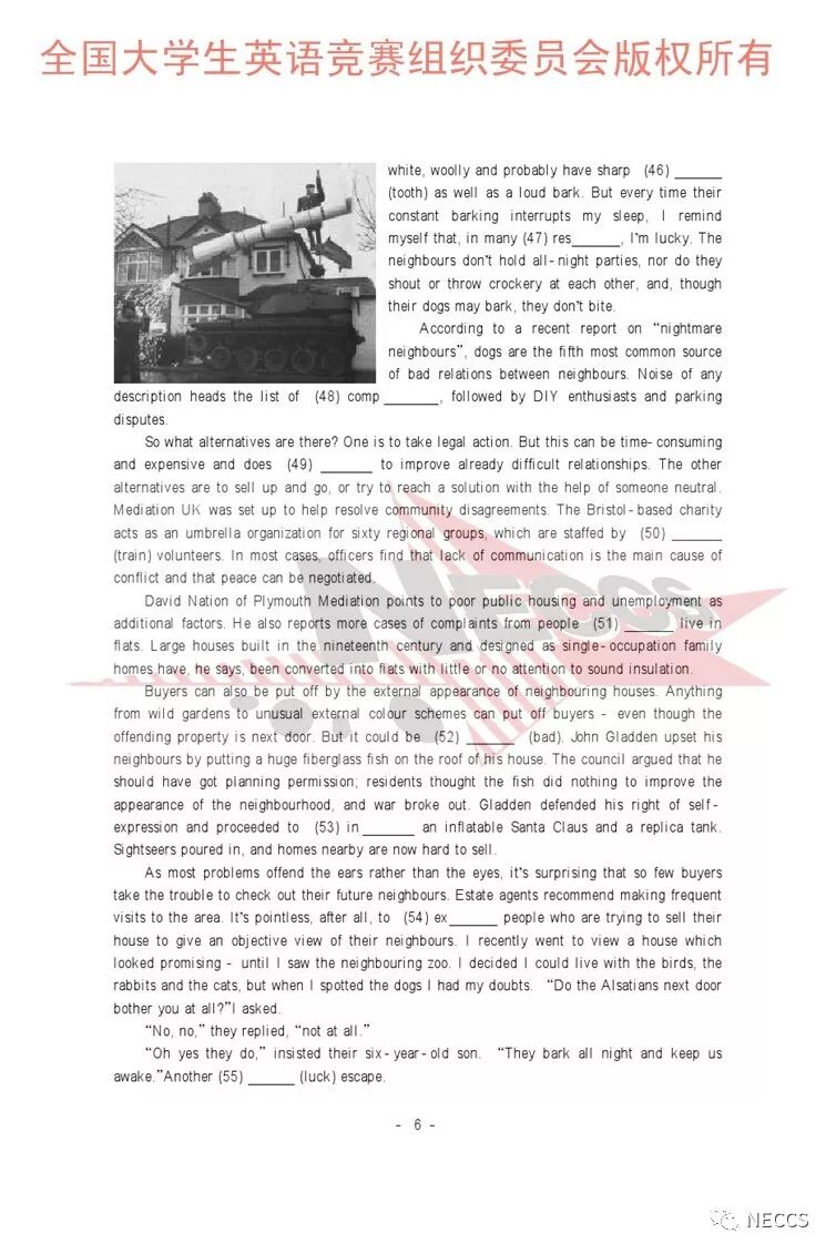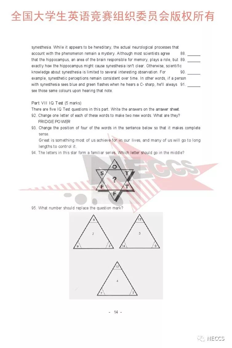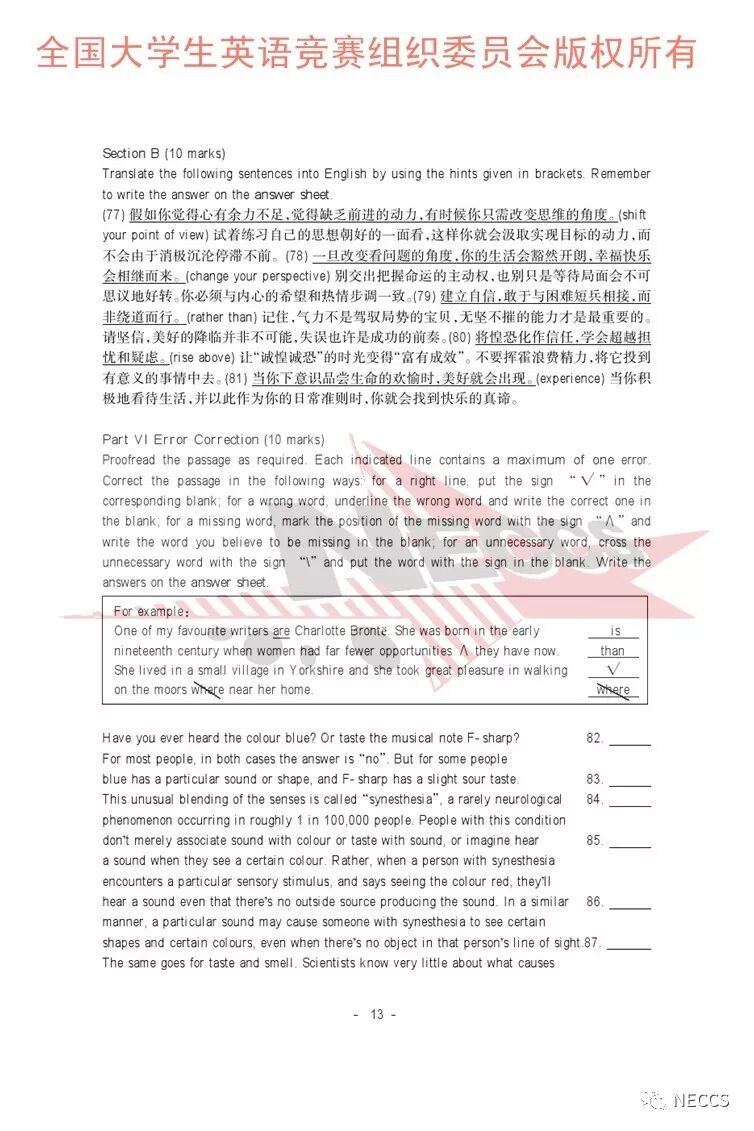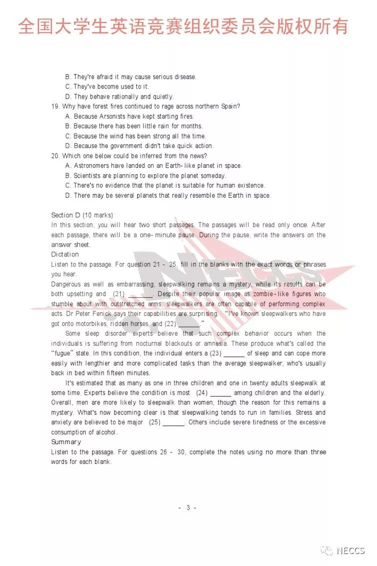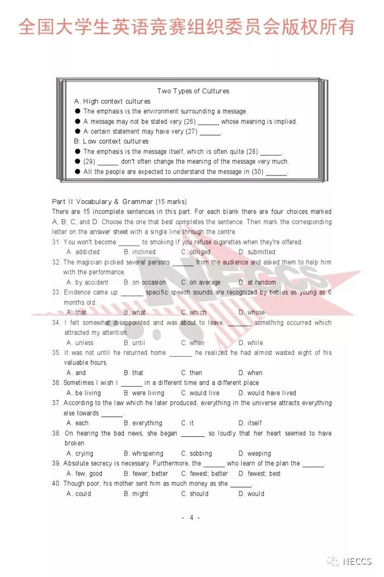 声明:样题版权归全国大学生英语竞赛组织委员会所有,任何单位及个人未经允许不得编辑、转载。