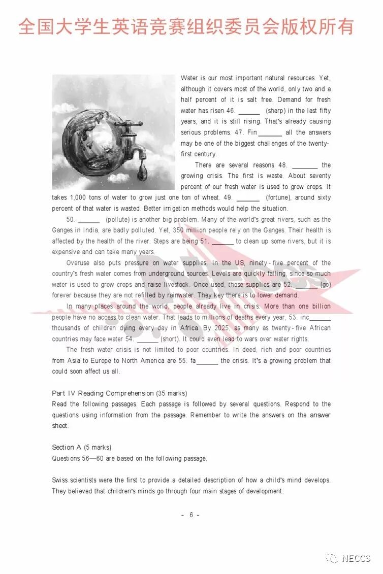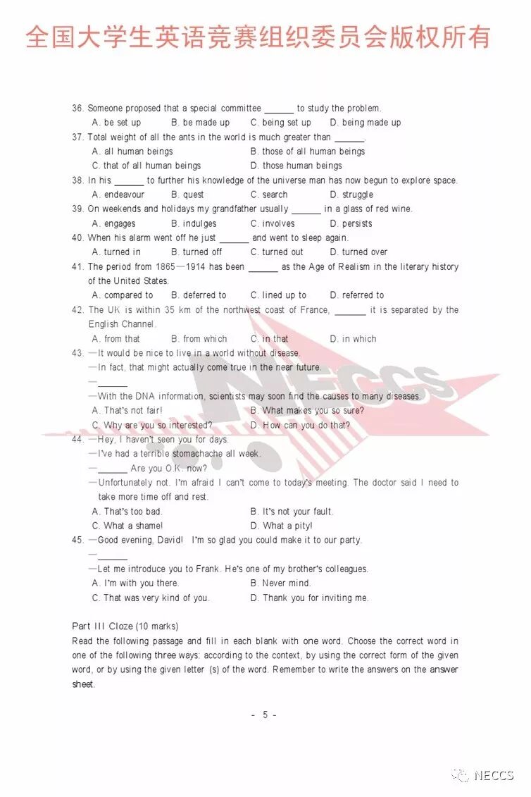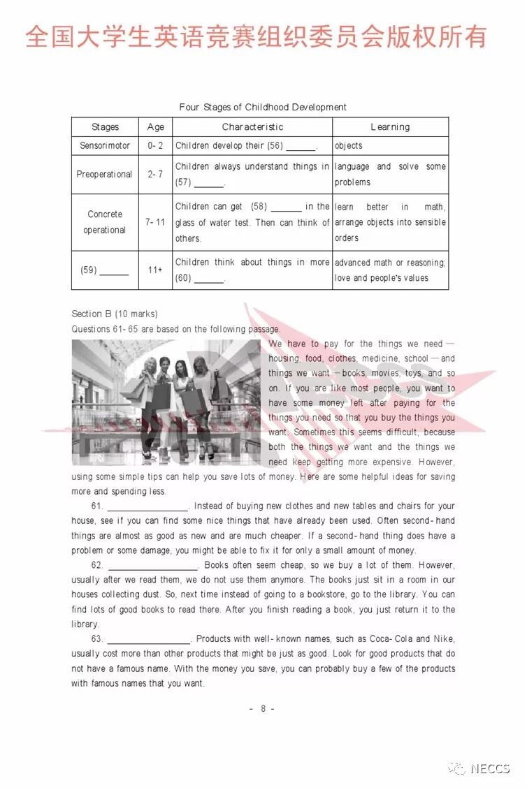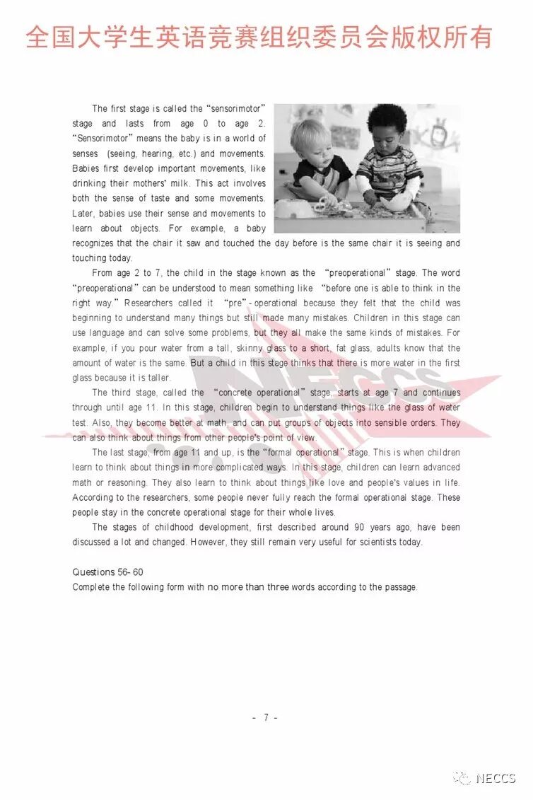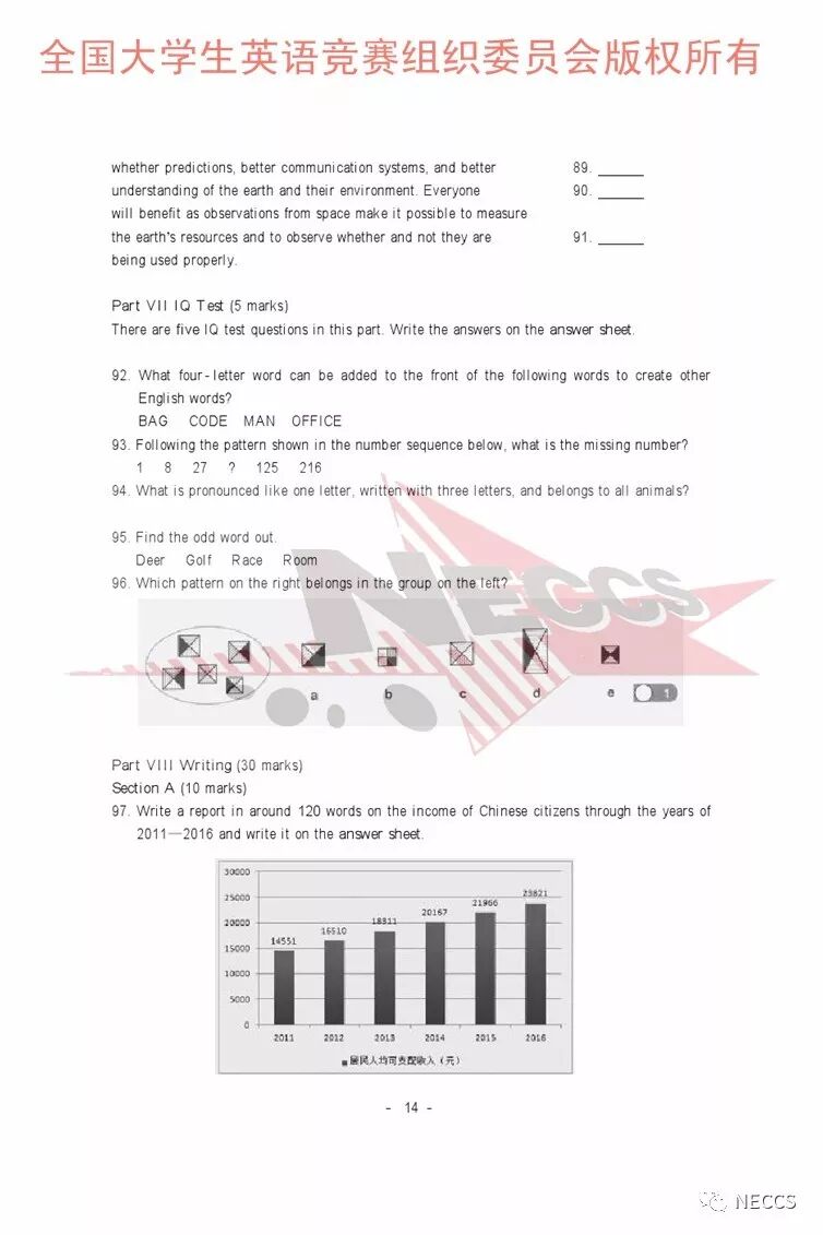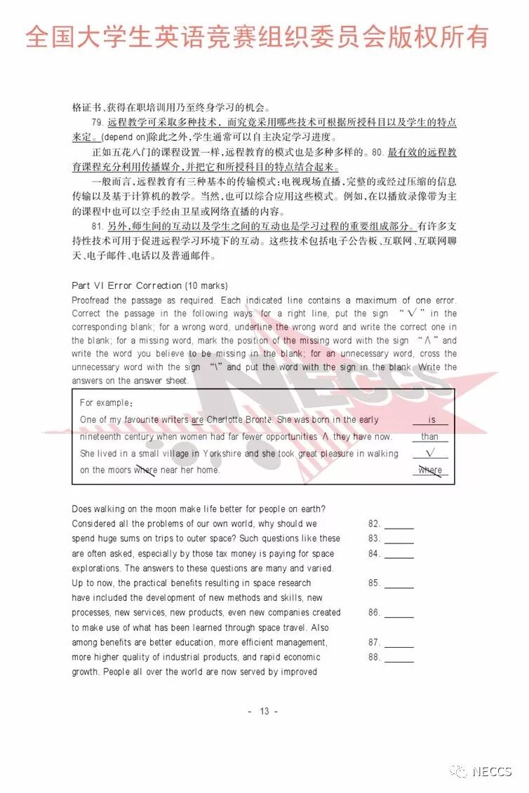 2018年全国大学生英语竞赛各类别样题、听力录音原文及参考答案版权归全国大学生英语竞赛组织委员会所有,任何单位、组织、个人未经允许不得以任何形式编辑、转载、使用,违者必究。