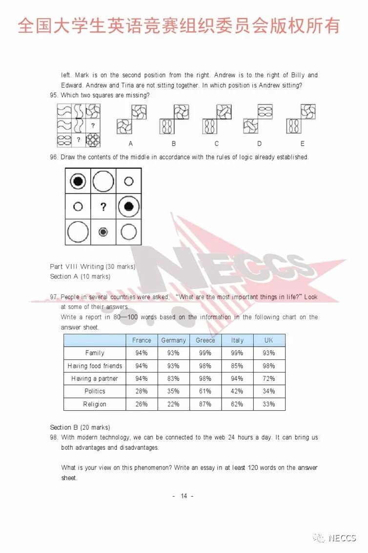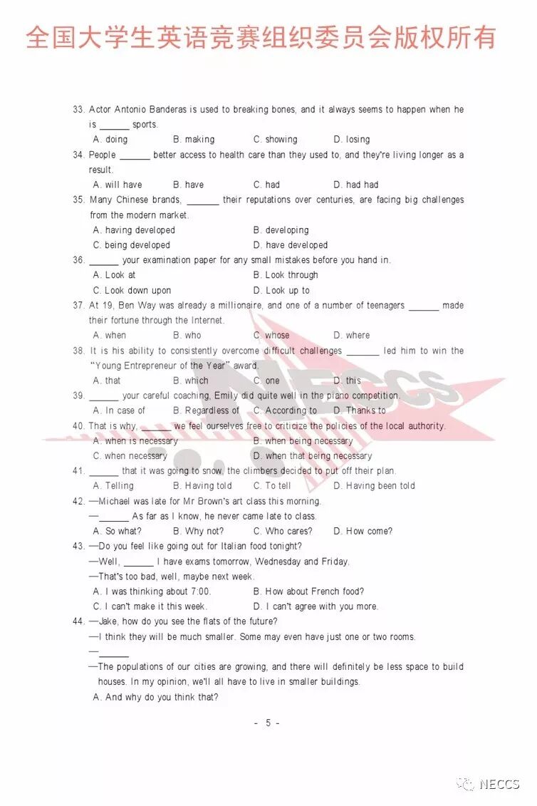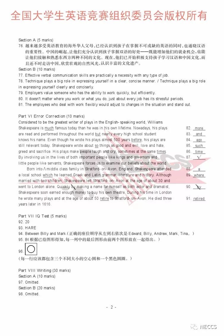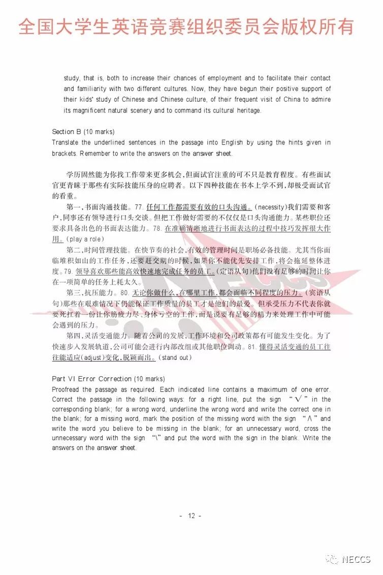 2018年全国大学生英语竞赛各类别样题、听力录音原文及参考答案版权归全国大学生英语竞赛组织委员会所有,任何单位、组织、个人未经允许不得以任何形式编辑、转载、使用,违者必究。