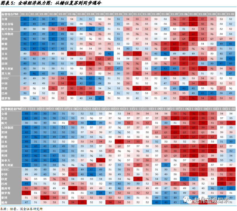 前期(2020-2021H1),由于疫苗尚处在研发和临床阶段,社交隔离几乎是唯一有效的应对举措,新增确诊人数的上行对应着社交隔离政策的收紧,进而加大经济下行压力。后期(2021H2-2022),随着新冠毒株的进化和疫苗接种的推进,发达经济体(AEs)率先落实有条件共存方案,救济政策逐步退出。2021年初至今,海外防疫政策已逐渐回归常态。中共二十大后,中国也逐步优化防疫政策。所以,2023年或是这一逻辑链的收官之年。围绕此逻辑,回溯2020-2022年周期的动态特征,有助于把握2023年全球宏观经济的全景。