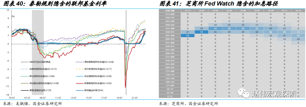 无论是与1990年以来的另外4次加息周期比较,还是与2017-2019年的缩表周期比较,本轮美联储政策的正常化都是超越历史的。3-12月,美联储已累计加息425bp。芝加哥期货交易所(CME)“美联储时钟”(Fed Watch)显示,2023年美联储还将加息50(-75)bp。这意味着本轮加息周期的终点利率区间为[475bp,500bp](或 [500bp,525bp])。