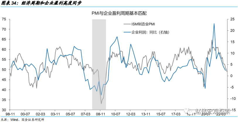 企业盈利增速2022年持续回落,2023年或延续下行态势。由于基数效应,企业盈利(净经营盈余)增速的高点是2021年6月(23.1%),其后一直处于下行通道中,2022年3季度已经下降至2.4%。企业盈利归根到底取决于总需求,是顺周期的,所以企业盈利与周期敏感性更高的制造业PMI指数高度同步,而PMI向下的趋势是比较确定的。