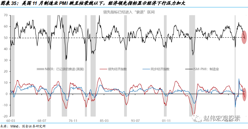从同步指标看,美国经济年底已跨过衰退的临界点。工业生产10月开始向下,其中,制造业向下的态势最明确,10月同比增速仅为2.4%,为年内新低。房地产市场数据从2季度末以来全面转为负增长。之所以说是“准衰退”,因为NBER判定衰退并不是及时的,而是滞后的,其判定标准之一就是各核心指标维持弱势的“持续性”。二战结束以来,衰退周期持续时长平均为11个月,只有2020年低于6个月(2020年3-4月)。这意味着,如果2023年上半年末美国经济能够企稳,那就能实现软着陆。