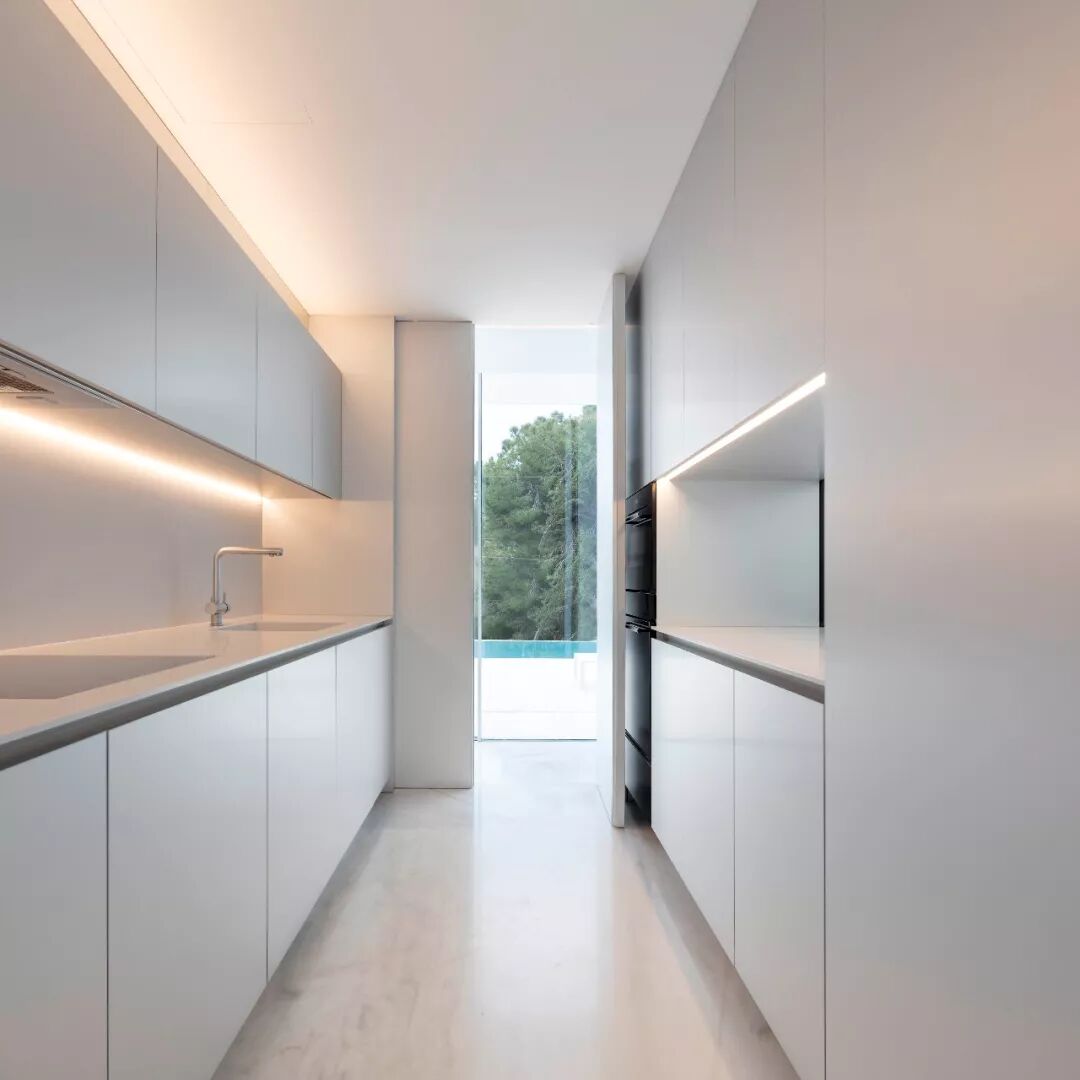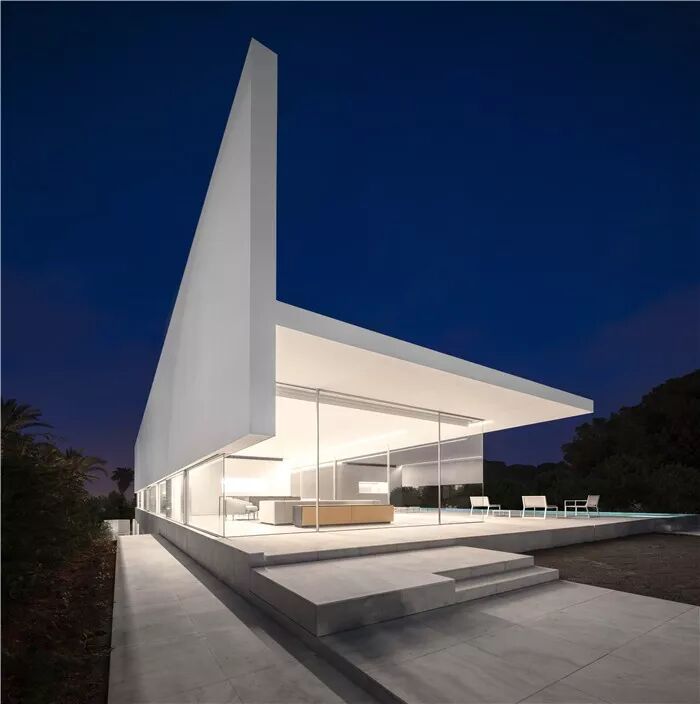 这栋Fran Silvestre Arquitectos建筑事务所的最新项目是位于瓦伦西亚的一个家庭住宅。乍一看,颇有气势且造型独特的白房子就像是“天外来客”。然而换一个角度,整个建筑又却平整得仿佛是土地上自然生长出来的。现代与自然在这里结合出令人惊艳的火花。