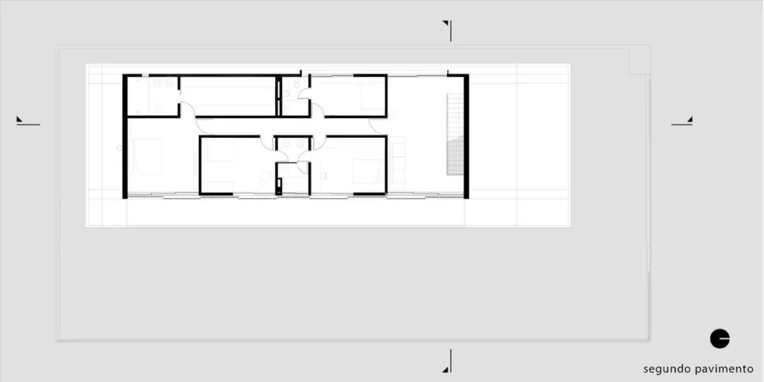 整座建筑可以分为三栋独立的房子,每个都配有私人户外空间。行走其间就好像穿越在巨大石制积木间,每一处的几何和线条都值得欣赏和玩味。