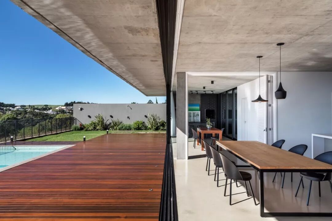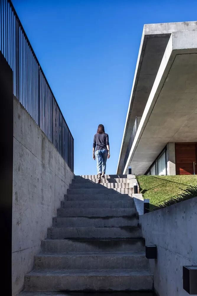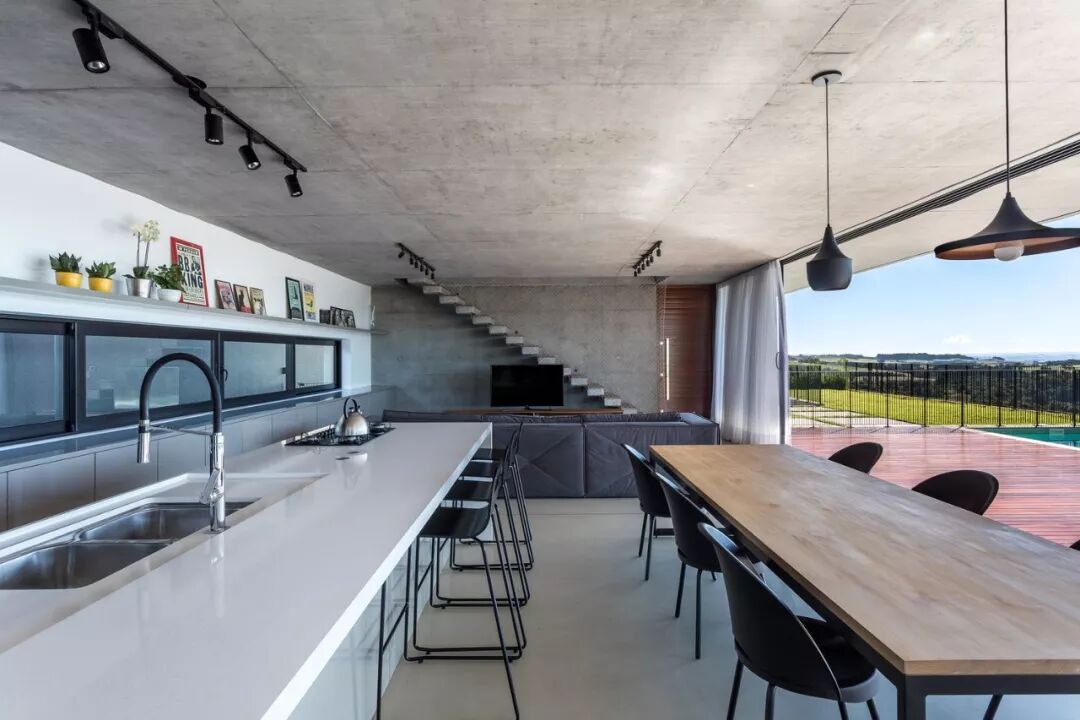 结构与自然是JK House设计的两大基石。设计师将混凝土的建筑元素融合到巴西巴拉那州美丽的山谷景观中。整栋建筑仿佛是嵌入当地自然环境的一块大石,沿着地势自然延伸。