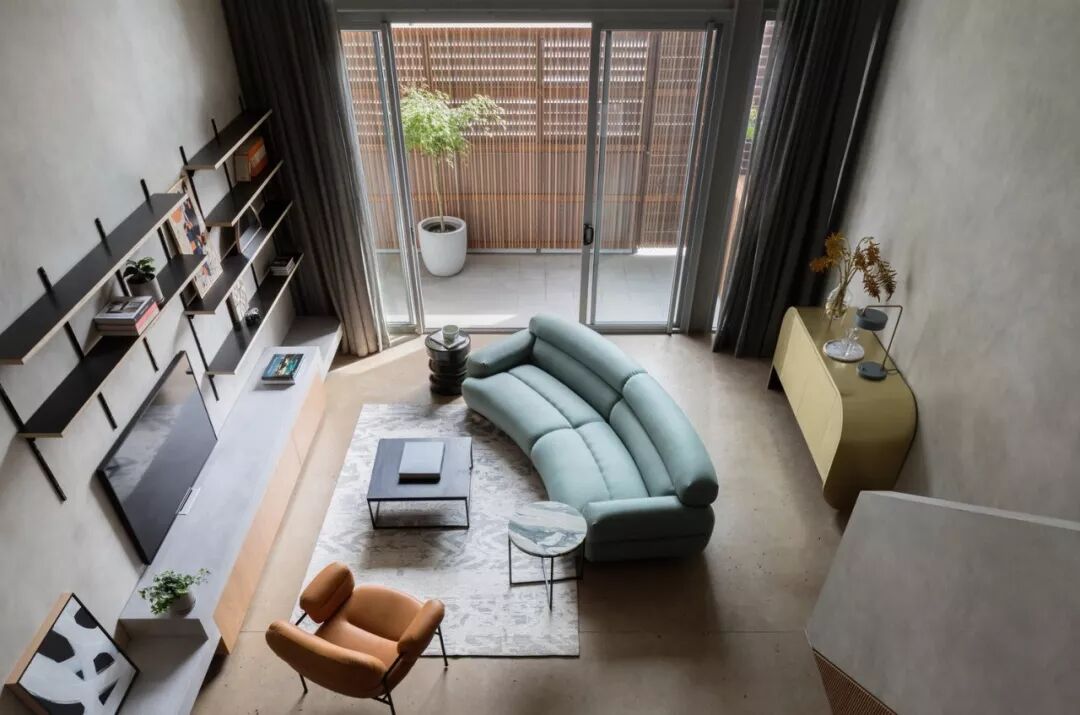 客厅,餐厅,厨房和阳台都被打造成相对独立的空间。小双高度将上下两层打通, 使得身处其中的人感到自在。
