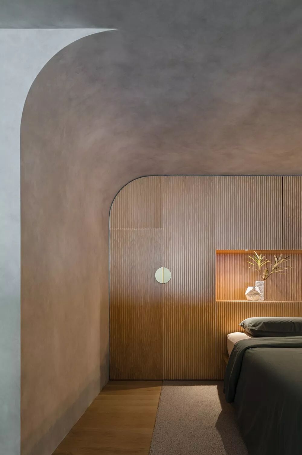 整个公寓像形一个类似洞穴的庇护所,同时又私密、温暖、实用,充满家庭气息。