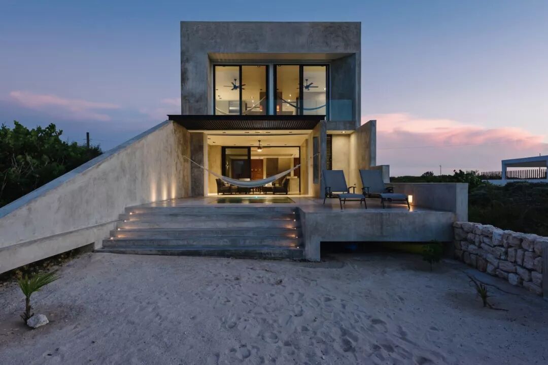 Chuburná House 坐落在尤卡坦海岸的一个僻静的海滩上。四周几乎没有其他建筑,更显得这栋混凝土建筑像西海岸港口绿松石海滩上的一座雕塑。