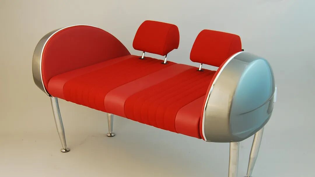 汽车的零件被拆分解构,车轮变为底座,而车尾则被改成霸气的沙发。