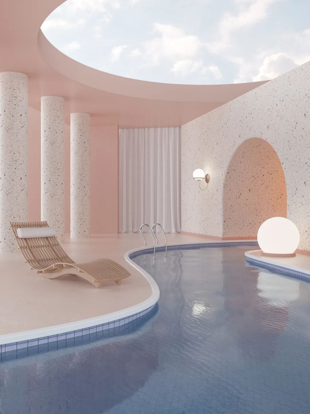 躲进这些梦境空间里,可以躺在火烈鸟泳圈上玩耍,也可以看着窗外美景做一次瑜伽。