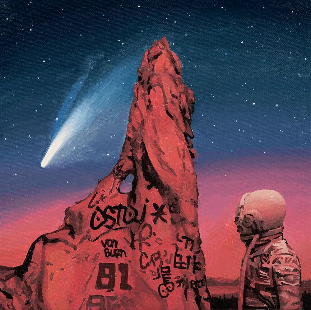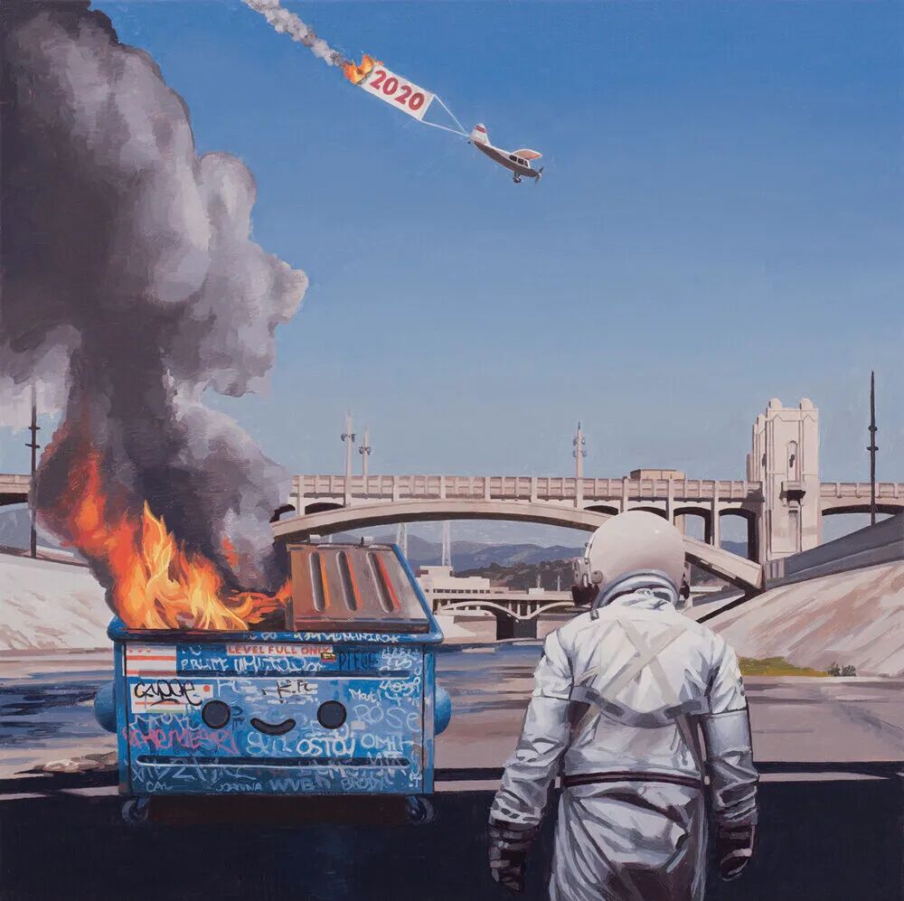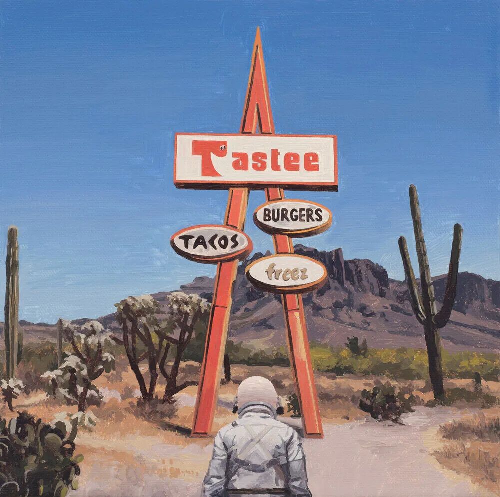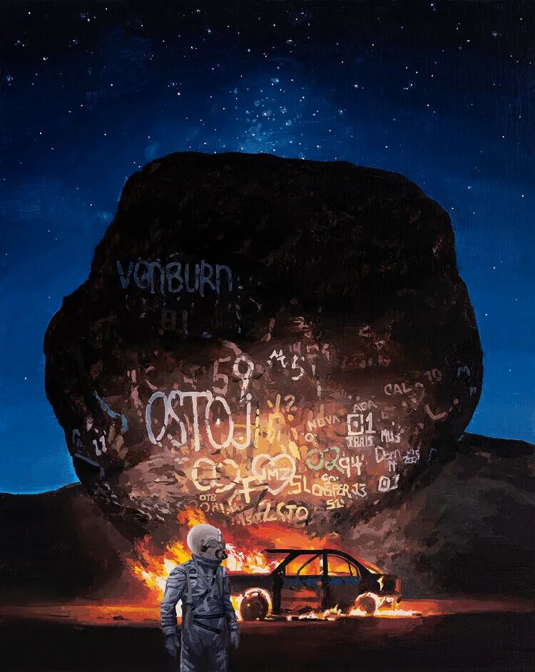 THE PLUS PAPER:你小的时候想当一名宇航员吗? Scott Listfield:是的!小时候就幻想自己长大成为一名宇航员。当然,没过多久我就意识到“坐在航空椅会让我感到眩晕”,这不是我可以攻克的困难。所以在很小的时候就放弃了去太空旅行的梦想。但我现在把他们画出来也相当于是实现梦想了,是吧? SL:我童年的大部分时间都在看电视和电影,这些影像都告诉我21世纪将具有超级未来感,最终可能会和机器人好朋友一起生活在月球上。其实在我刚刚成年那段时间,生活都不怎么有趣,更没有期待过太空冒险。在美国相对偏远的地区,度过大学四年的学习生活以及偶尔去旅行后,开始感觉自己与身边的环境有点格格不入。 SL:因为发觉未来的生活并不像过去以为的那样,但世界还是以让我感到奇怪和陌生的方式震惊着我。我开始思考小时候想要成为宇航员的梦想,以及这个符号代表的一切。于是开始绘制眼中不同寻常的当代世界,并在其中放入宇航员的形象。即使过了很多年,仍在这样创作。 ![]()