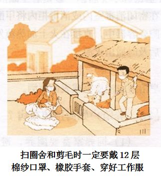 一是在剪毛、接羔和处理病畜流产物、排泄物时,要戴12层的加厚棉纱口罩、橡胶手套、穿工作服、戴帽子,工作后勤洗手或消毒,将个人防护品日光下暴晒10~20分钟。