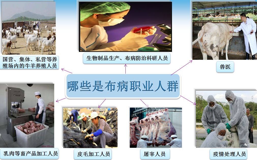 1、经皮肤粘膜直接接触感染。接牛羊产羔、饲养、皮毛加工、屠宰、挤奶、兽医诊治时直接接触病畜分泌物或被病畜污染的水源、土壤、草场、工具等,从事布病生物制品生产和防治科研工作等;