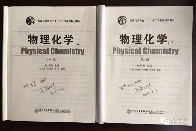 化学加要特别提一下,孙院士曾于2015年7月向化学加网签名赠送了他主编的《物理化学》上下册两本书。在此由衷的向孙院士致以深深的敬意,感谢他给予我们化学加网的支持和鼓励!恭祝孙院士春节快乐,阖家幸福!