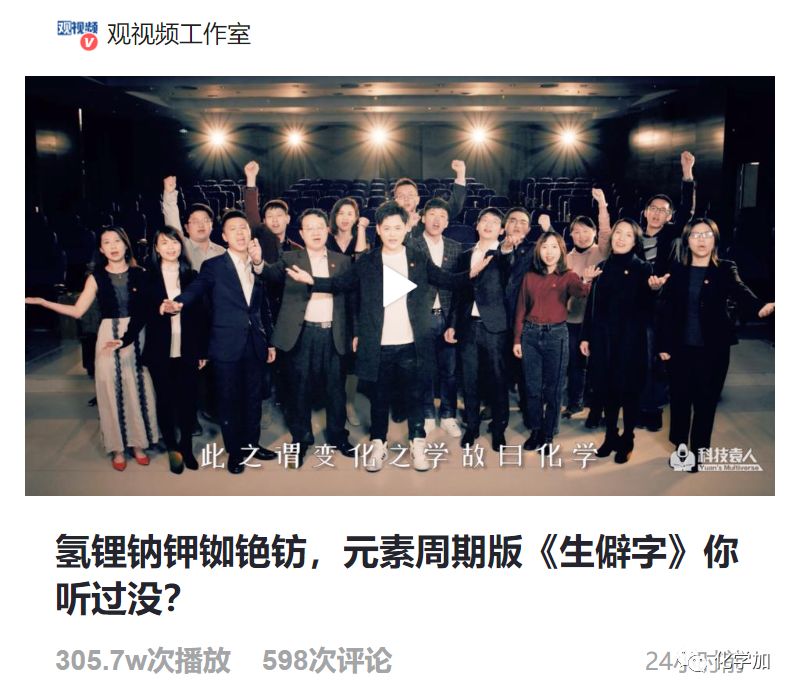 化学元素周期表版《生僻字》在抖音上收获超过30万的点赞量,在微博秒拍上已有超过300万的播放量,很受大家欢迎,快快转发收藏起来!