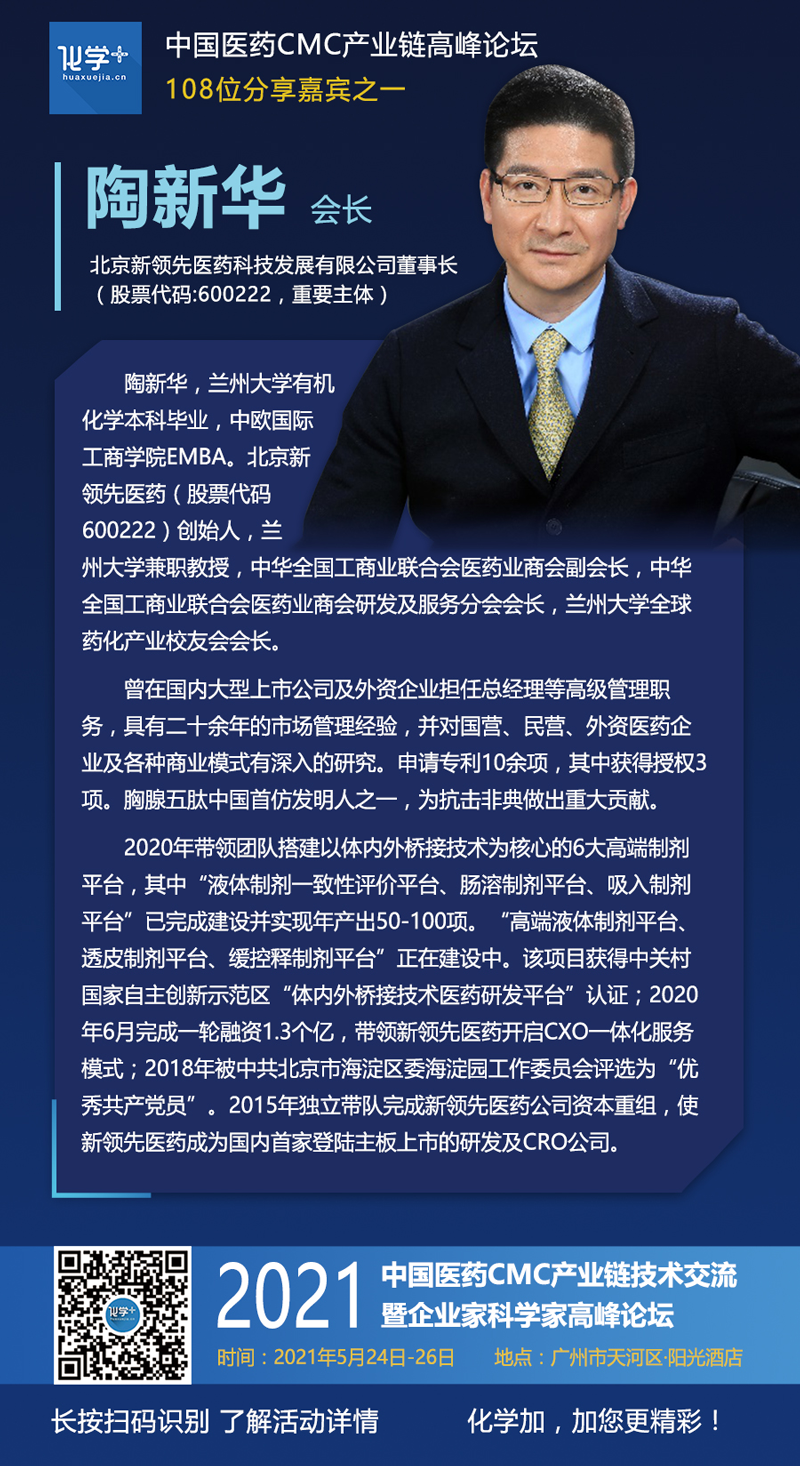 兰州大学全球药化产业校友会会长、北京新领先医药科技有限公陶新华董事长;