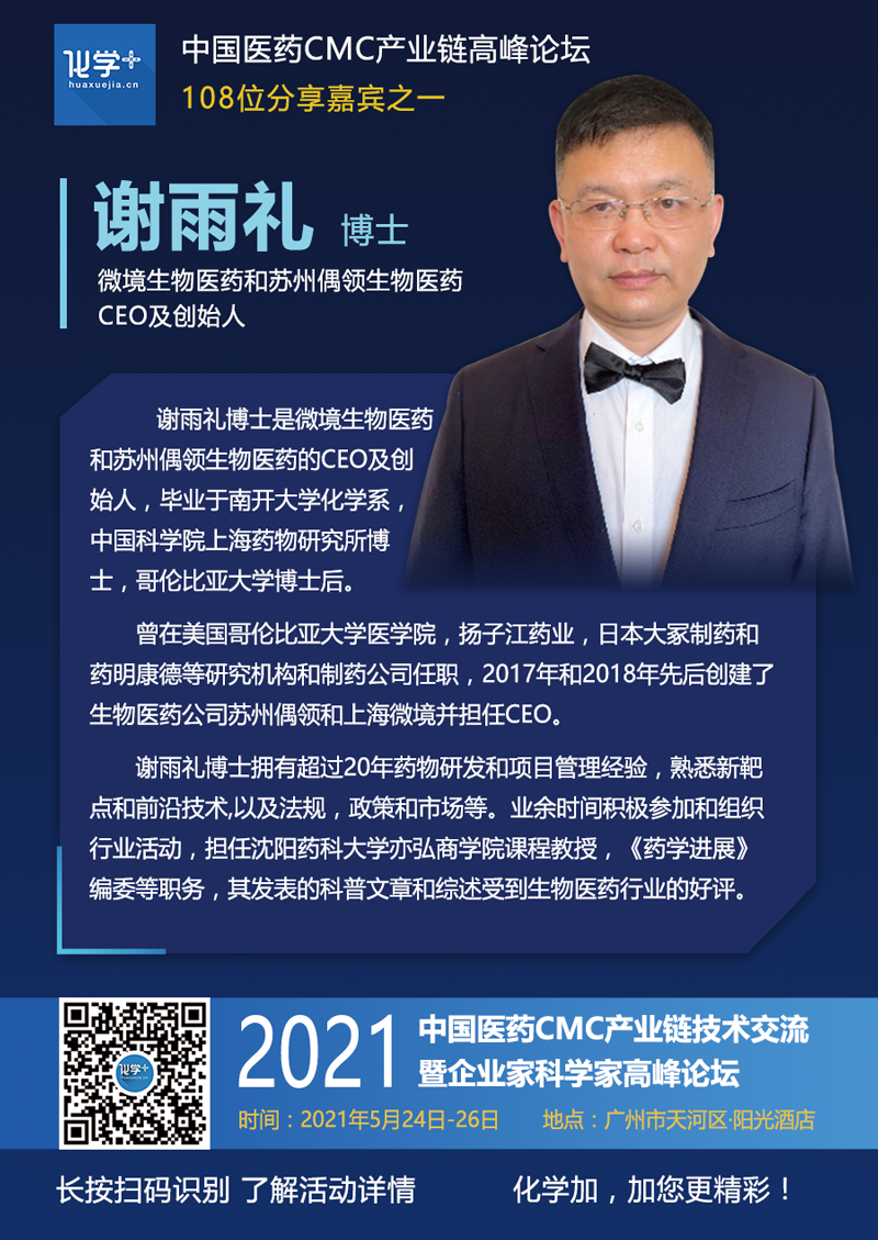 微境生物医药&苏州偶领生物医药创始人、CEO谢雨礼博士;
