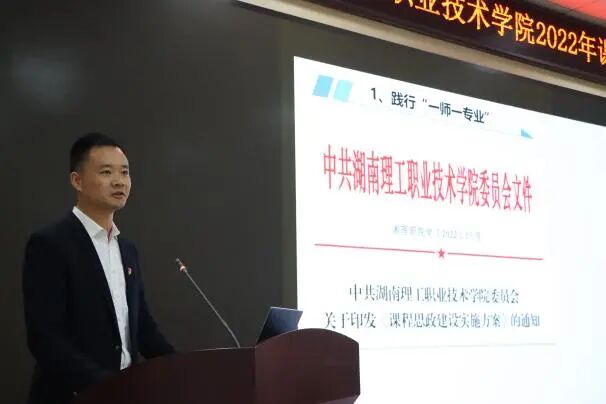 为全面贯彻落实立德树人根本任务,充分发挥教师队伍“主力军”、课程建设“主战场”、课堂教学“主渠道”作用,积极推进课程思政建设与改革,2022年11月1日下午,我院在博学楼报告厅举办了“课程思政”阶段性推进成果展示会,会议由教务处副处长王泳辉主持,学院党委书记叶星成、校长李科、副校长黄霞春出席,全院专兼职教师到场观摩。