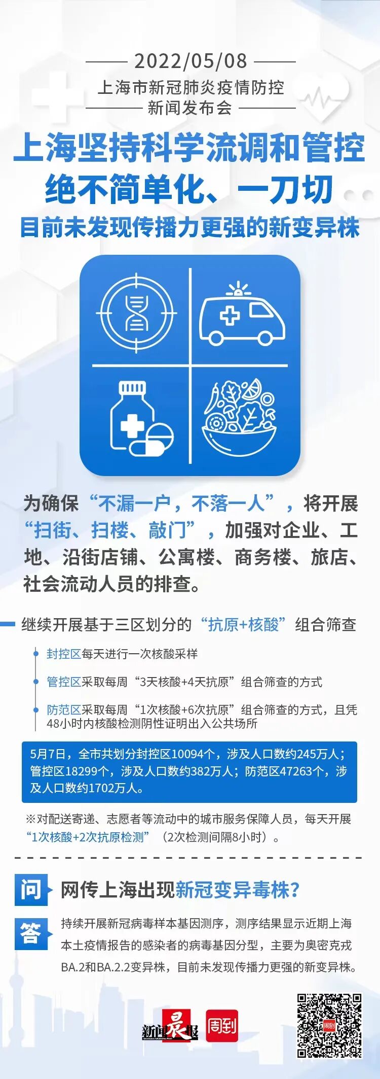 市卫生健康委副主任赵丹丹介绍,5月7日,全市共划分封控区10094个,涉及人口数约245万人;管控区18299个,涉及人口数约382万人;防范区47263个,涉及人口数约1702万人。