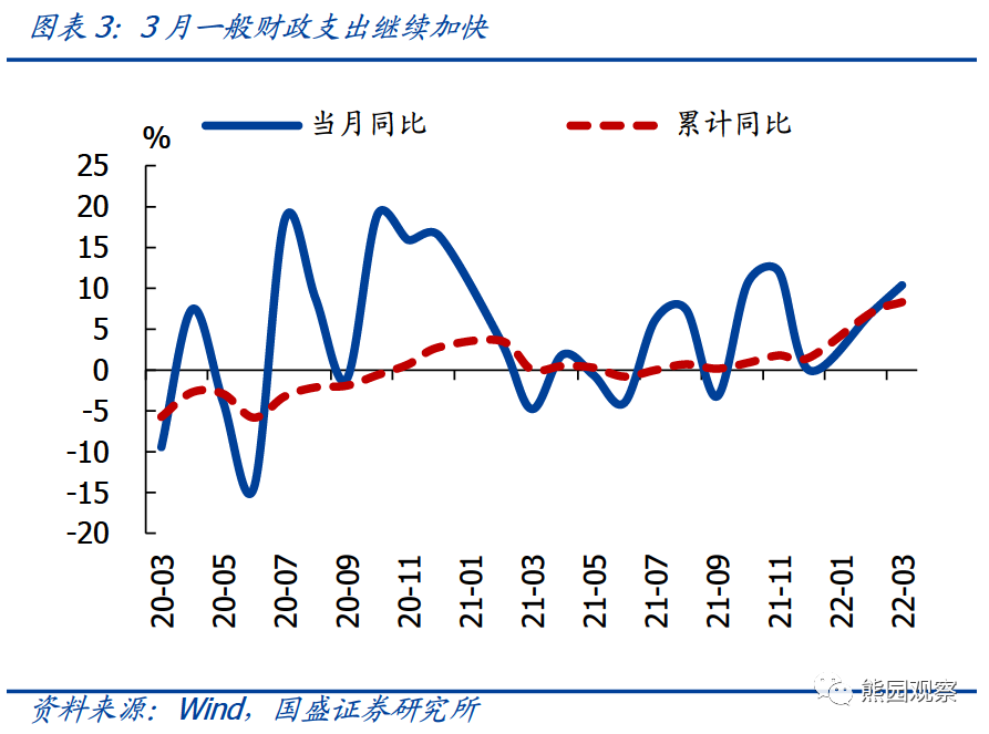 >3月卫生健康、社保等财政支出超季节性大增,“动态清零”、常态化核酸等防疫举措也将进一步加大财政支出压力。3月卫生健康相关支出增速由1-2月的4%抬升至9%,社保相关支出增速由1-2月的4.8%抬升至10.4%,近几年看这两项支出都是环比下降,指向的是建设方舱医院、核酸检测、失业险等防疫相关的支出明显增加。此外,常态化核酸检测如果全国范围内推广,也将进一步加大财政支出压力。