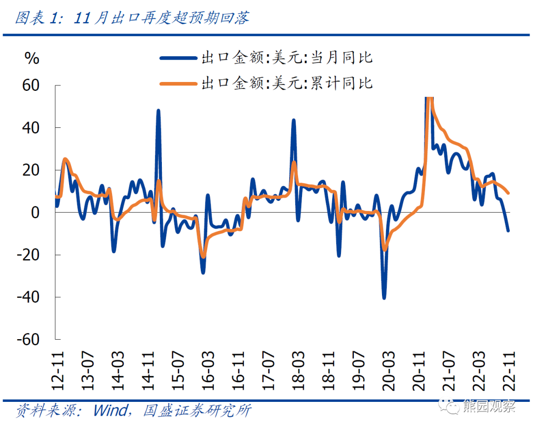 本文节选自国盛证券研究所已于2022年12月7日发布的报告《明年政策的大方向—兼评11月出口大降》,具体内容请详见相关报告。