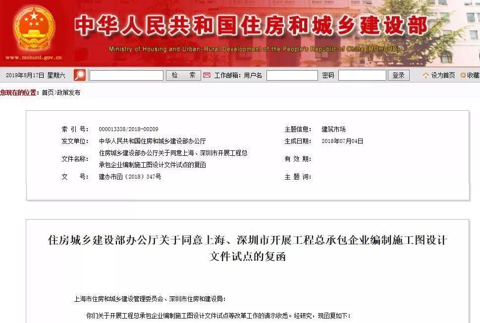 一、同意在上海、深圳市开展工程总承包企业编制施工图设计文件试点,同步开展建筑师负责制和全过程工程咨询试点。试点期限为3年,自2018年8月1日起至2021年7月31日止。