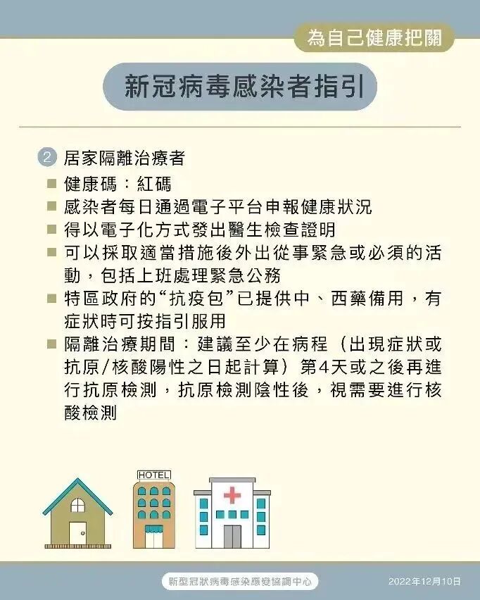 变红码,经评估后需预约就诊。若医生说无住院需要,取药回去居家隔离就好; 旅客可住特定酒店进行隔离(按一般酒店标准自费);