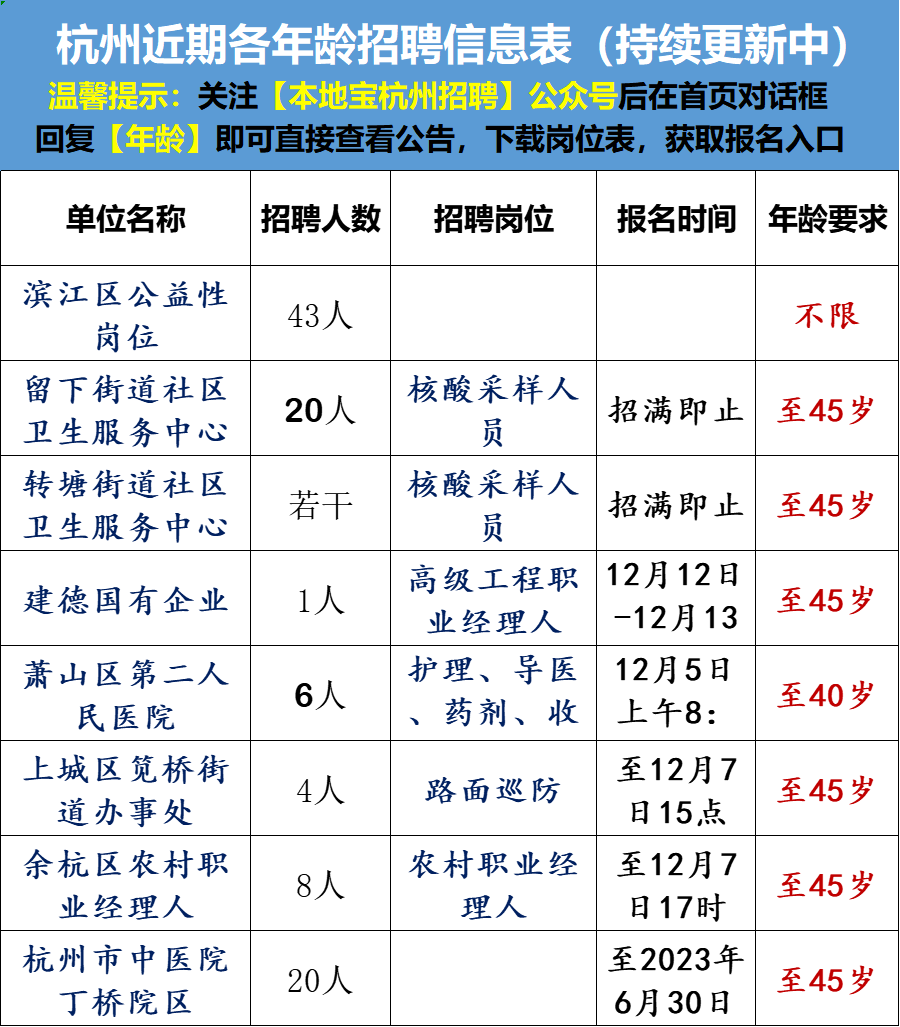 杭州近期35岁以上人群可报招聘信息