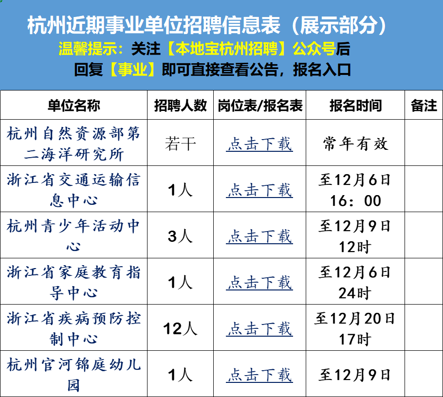 杭州近期事业单位招聘信息
