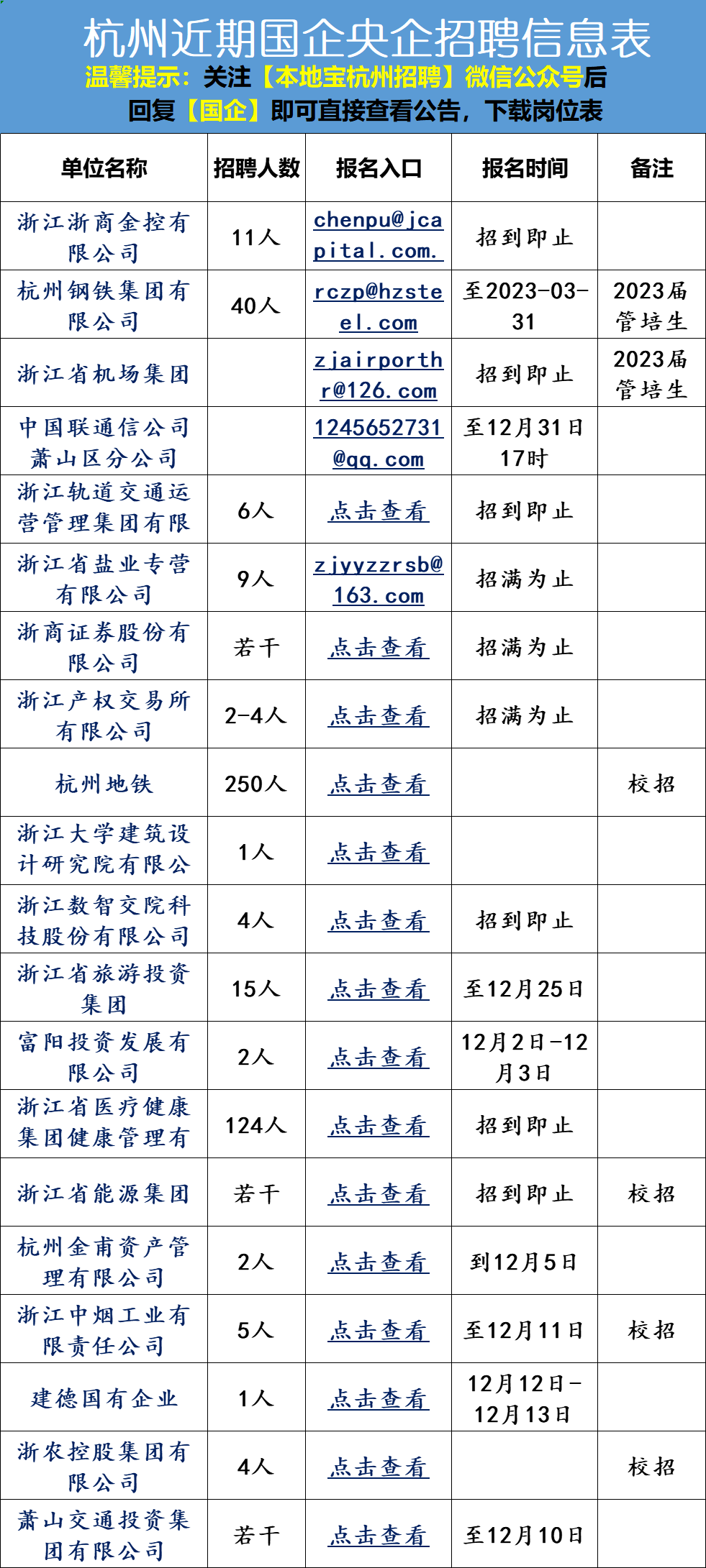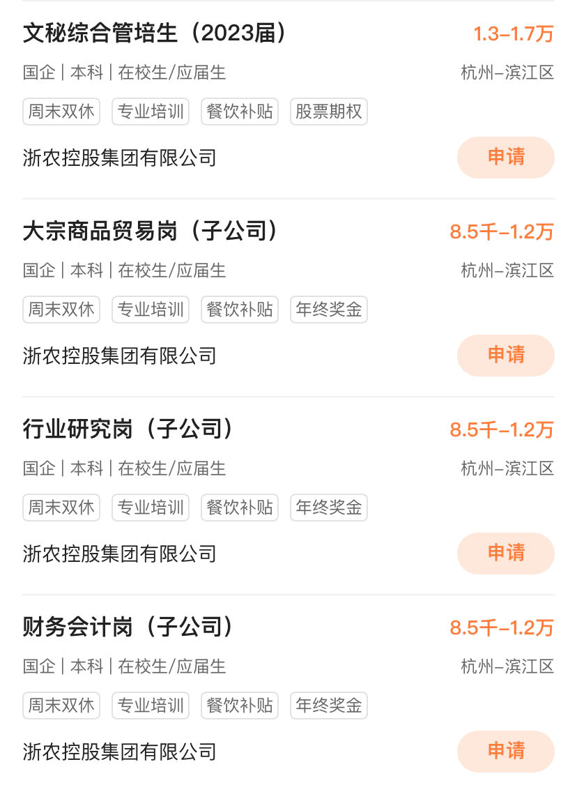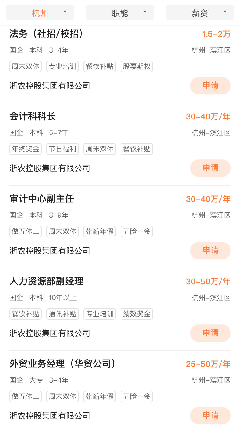 杭州近期国企招聘信息