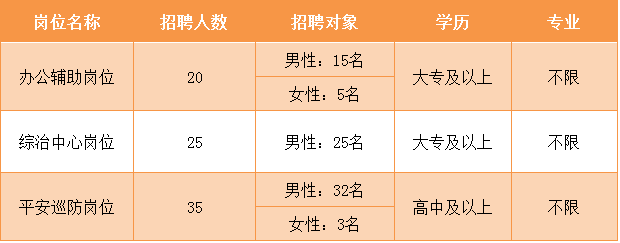 共计招聘编外工作人员80名,主要从事办公辅助、综治中心、平安巡防等岗位,具体如下: