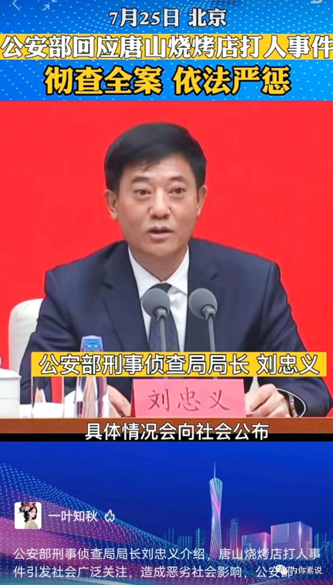 北京终于传来了一点好消息:公A部刑侦局局长刘忠义公开表态要彻查唐山烧烤店杀人案全案,依法严惩罪犯……