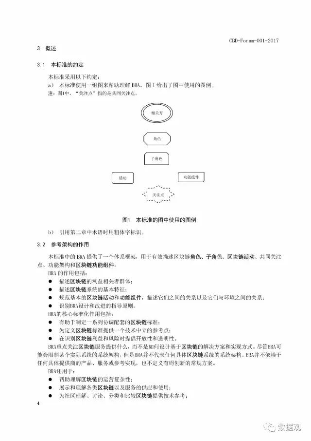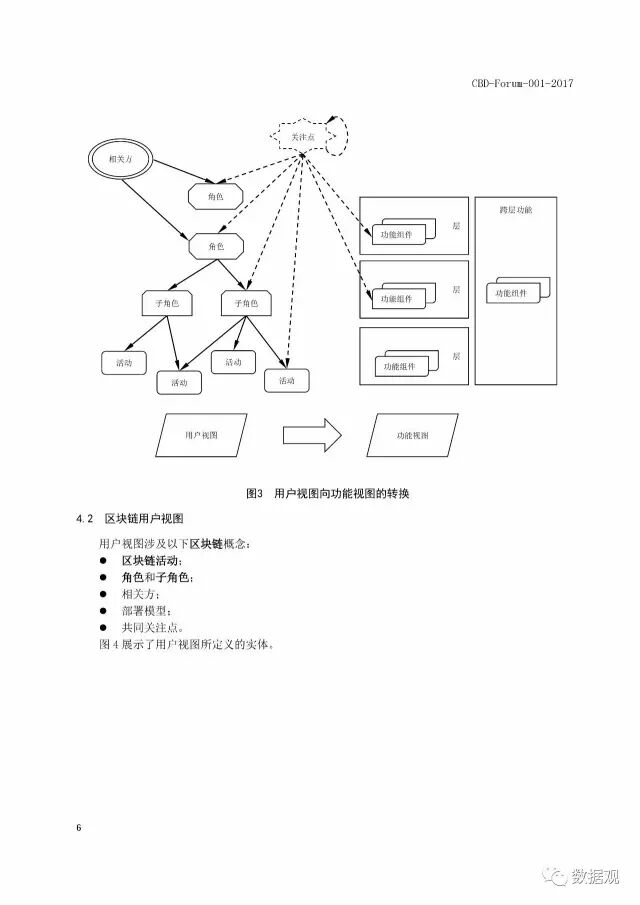 《区块链 参考架构》标准规定了区块链参考架构(BRA)。规定了以下内容:区块链参考架构涉及的用户视图、功能视图;用户视图所包含的角色、子角色及其活动,以及角色之间的关系;功能视图所包含的功能组件及其具体功能,以及功能组件之间的关系;以及用户视图和功能视图之间的关系。