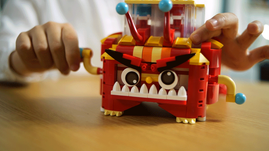 包含330多个小颗粒,尺寸11.5*32.5*10.cm一个人操作喷火龙喷火,另一个人躲避火球,很挑战专注力和反应力,以及两个玩家的默契度。如果小人不小心撞上了火球,就躺倒了,不会像电子游戏机里那么血腥。▼ 火龙也萌萌的