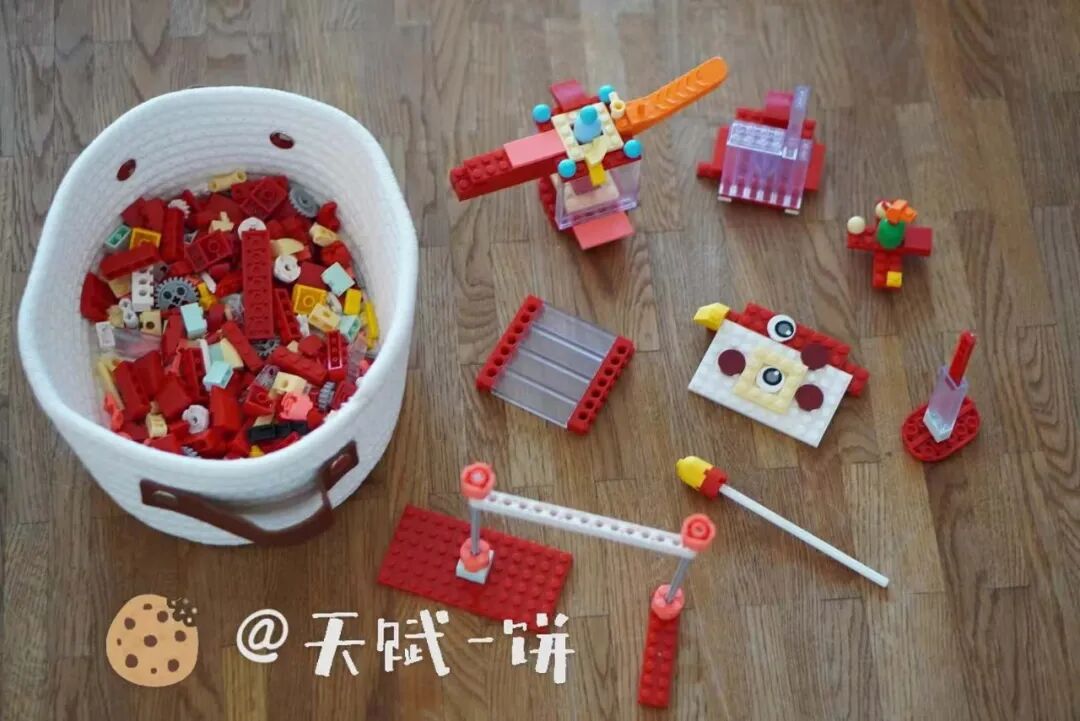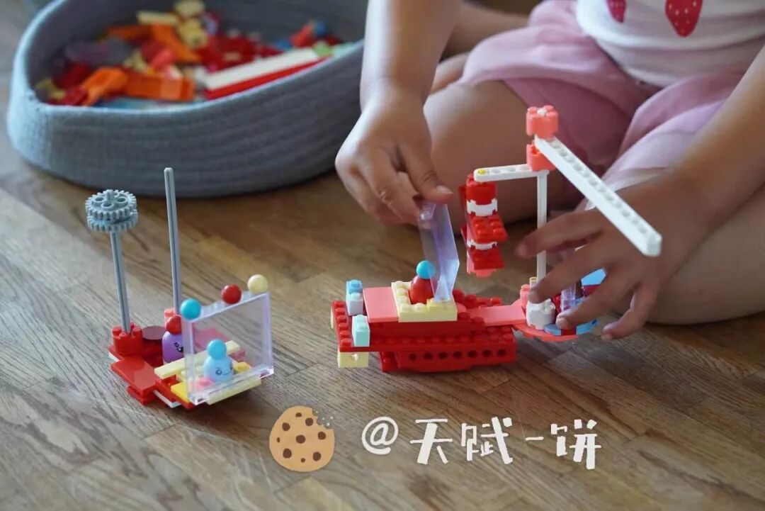 因为它本身就是一套非常高质量的开放式小颗粒,可以让娃自由创造出无数造型。▼ 饼饼自己独立拼的造型中的一小部分
