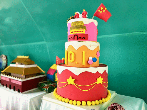 闪闪红星照万代,颗颗童心放光彩,一架风车、一个蛋糕……都是常山县何家乡第一中心幼儿园孩子们送给祖国母亲的生日礼物。