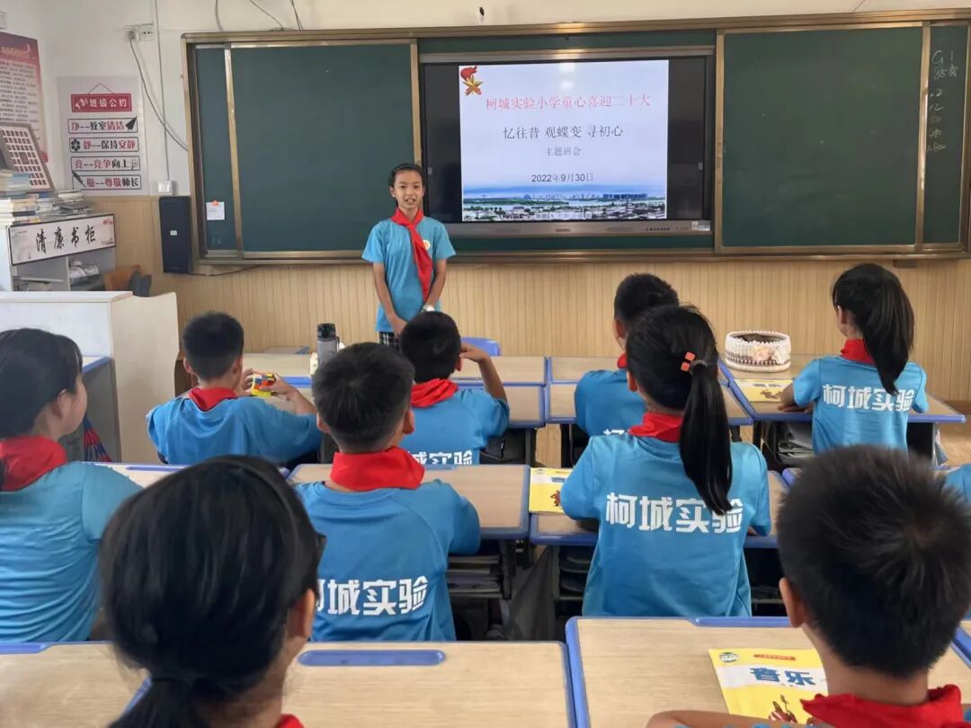 衢州市柯城区实验小学开展了“忆往昔、观蝶变、寻初心”童心喜迎二十大主题班会,通过观看一张张新旧照片的对比,感受三衢大地经济社会发展取得的历史性变革和成就。