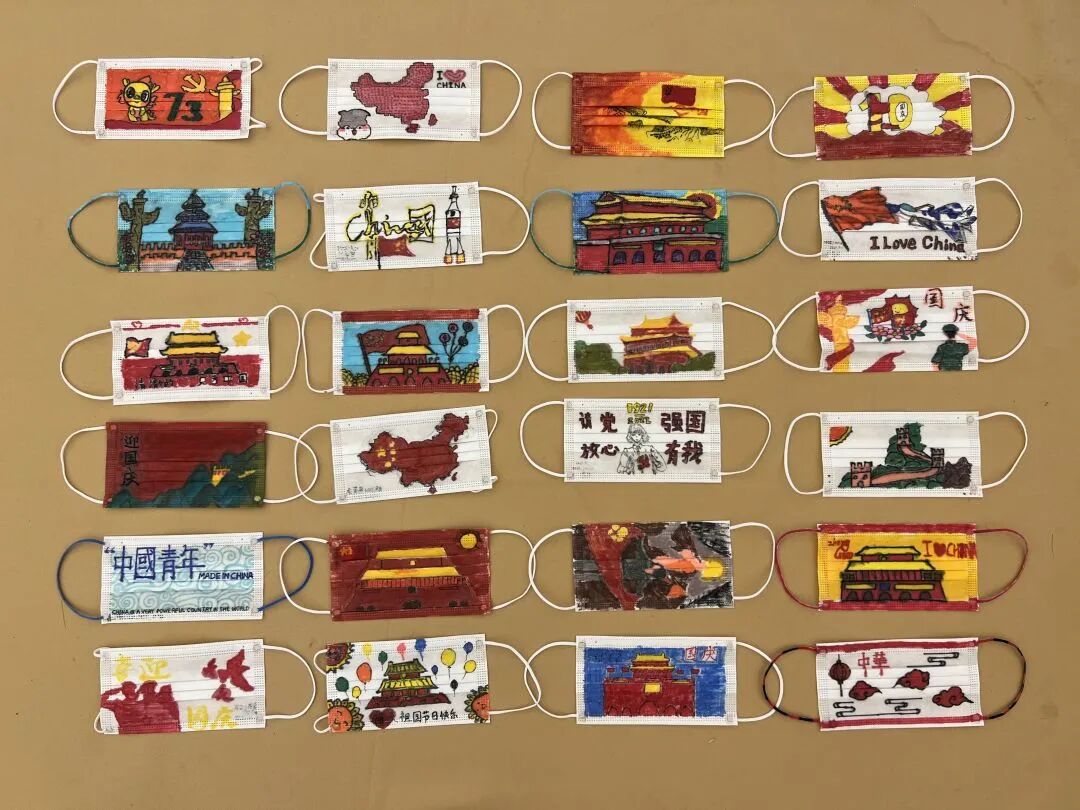 宁波职业技术学院机电工程学院的学子们在教学楼里开展了一场与众不同的活动,平日里天天跟机床器械打交道的同学们拿起画笔,细心绘制创意口罩为祖国母亲庆生。