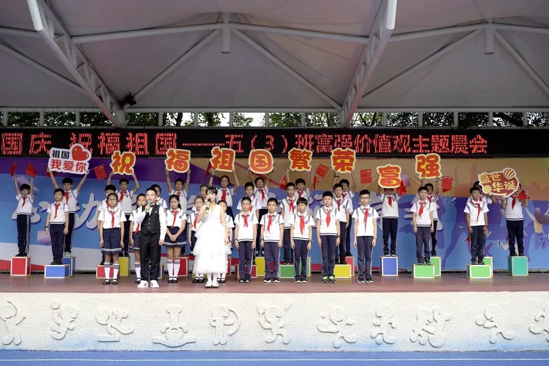 温州市中通实验学校小学部举行“喜迎国庆,祝福祖国”主题晨会,多才多艺的孩子们带来了诗歌朗诵《祖国万岁》、独唱《我和我的祖国》和双人舞,尤其是大合唱《国家》,一曲毕,全场心潮澎湃。