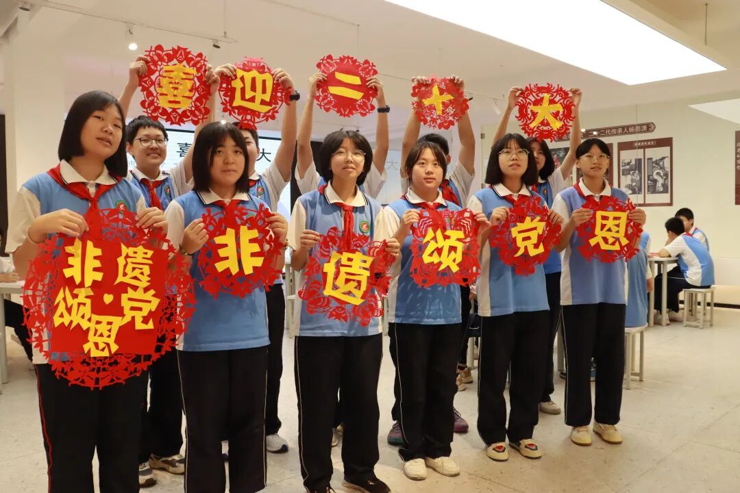 临海市城西中学的同学们在剪纸教室开展“喜迎二十大,剪纸颂党恩”活动。同学们在非遗手工剪纸中表达对党和祖国的深厚情感。