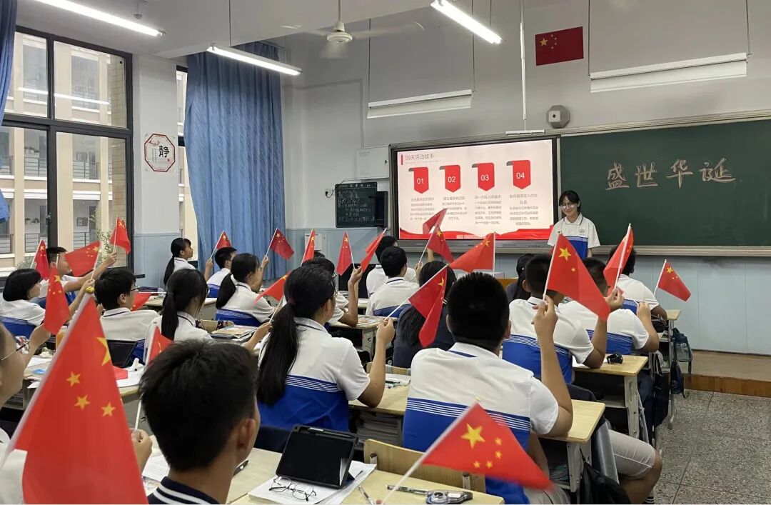 杭州市余杭区仓前中学开展“迎十一、庆国庆”系列主题活动。有的班以一首《我和我的祖国》,唱响伟大祖国的光辉历程;有的观看红色影视资料,重温红色岁月。