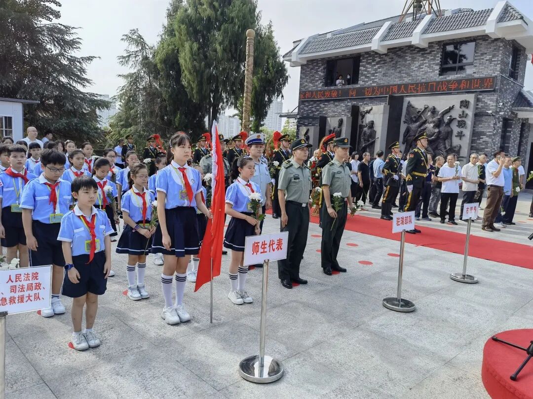 瑞安市玉海第二小学师生代表参加烈士纪念碑敬献花篮活动。