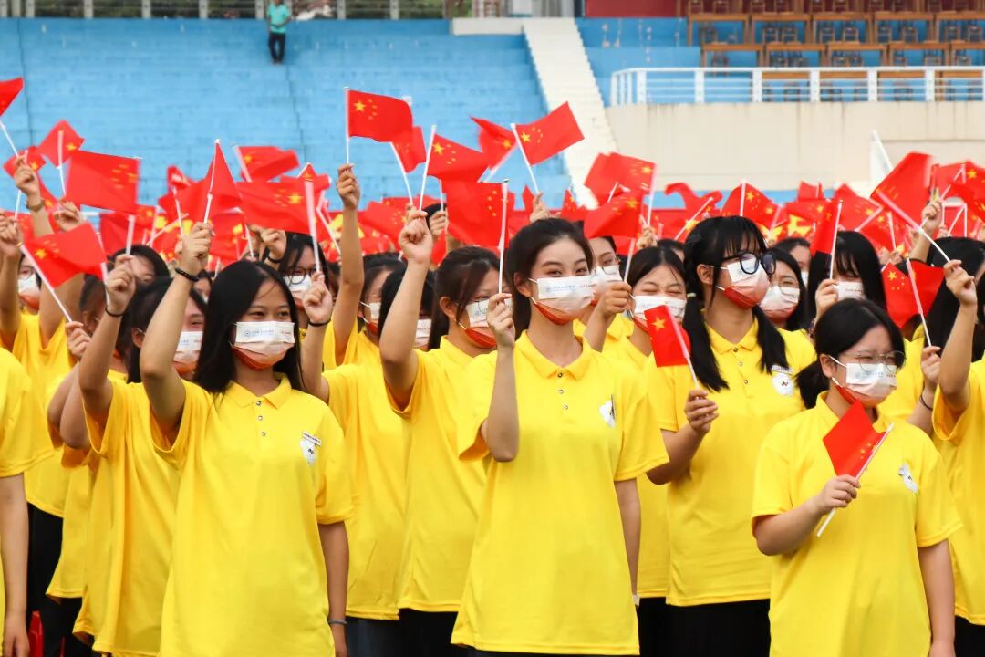 金华职业技术学院举行2022级新生开学典礼,现场全体师生手中挥舞五星红旗,为党和祖国献上最诚挚的祝福。
